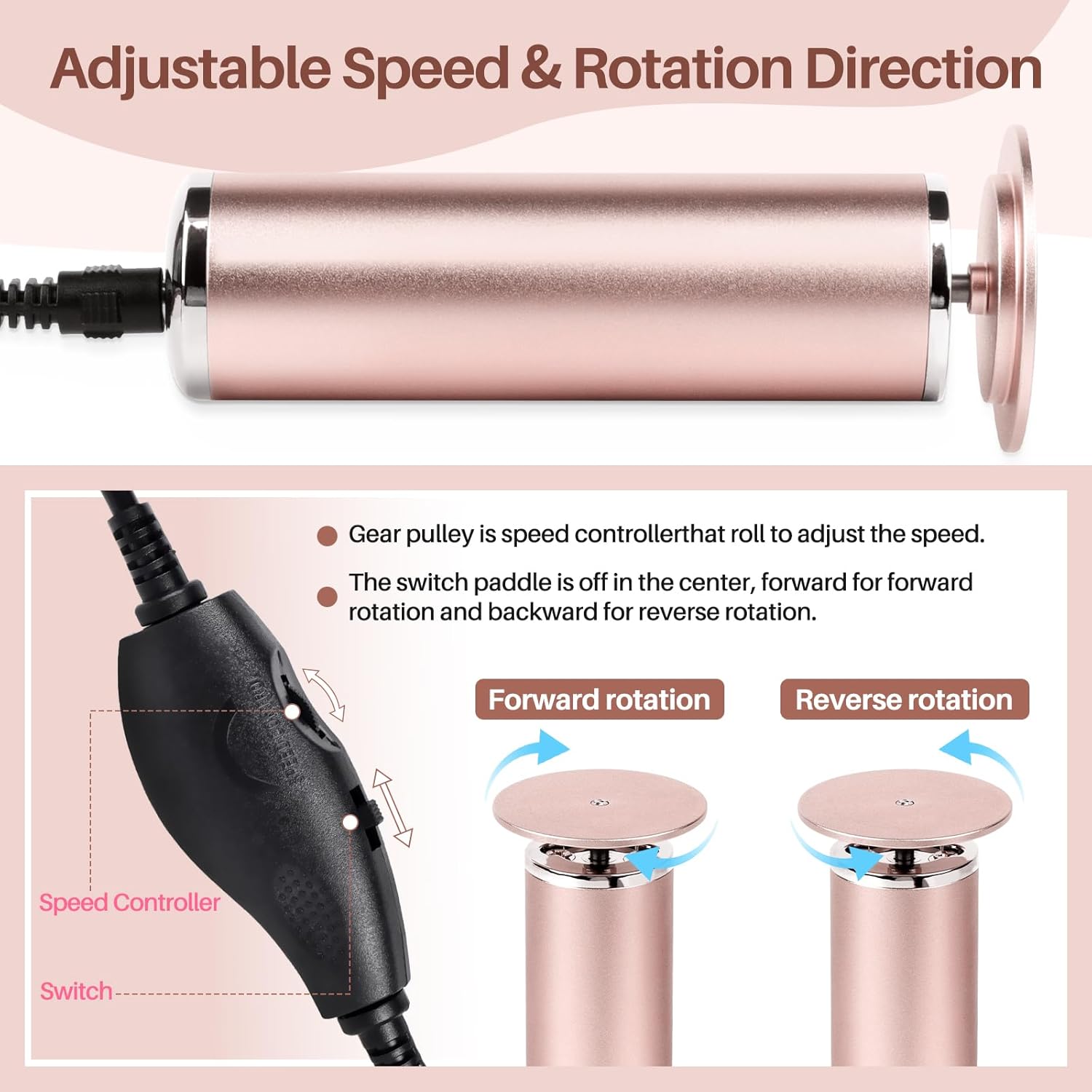 - 【Electric Foot File Remover Callus】360-Degree Rotation Professional-grade electric foot care tool with Adjustable speed and sanding rotation direction of dead skin and calluses, suitable for both right and left-handed use.delivering salon-level pedicure results at home/Salon/Spa Use.