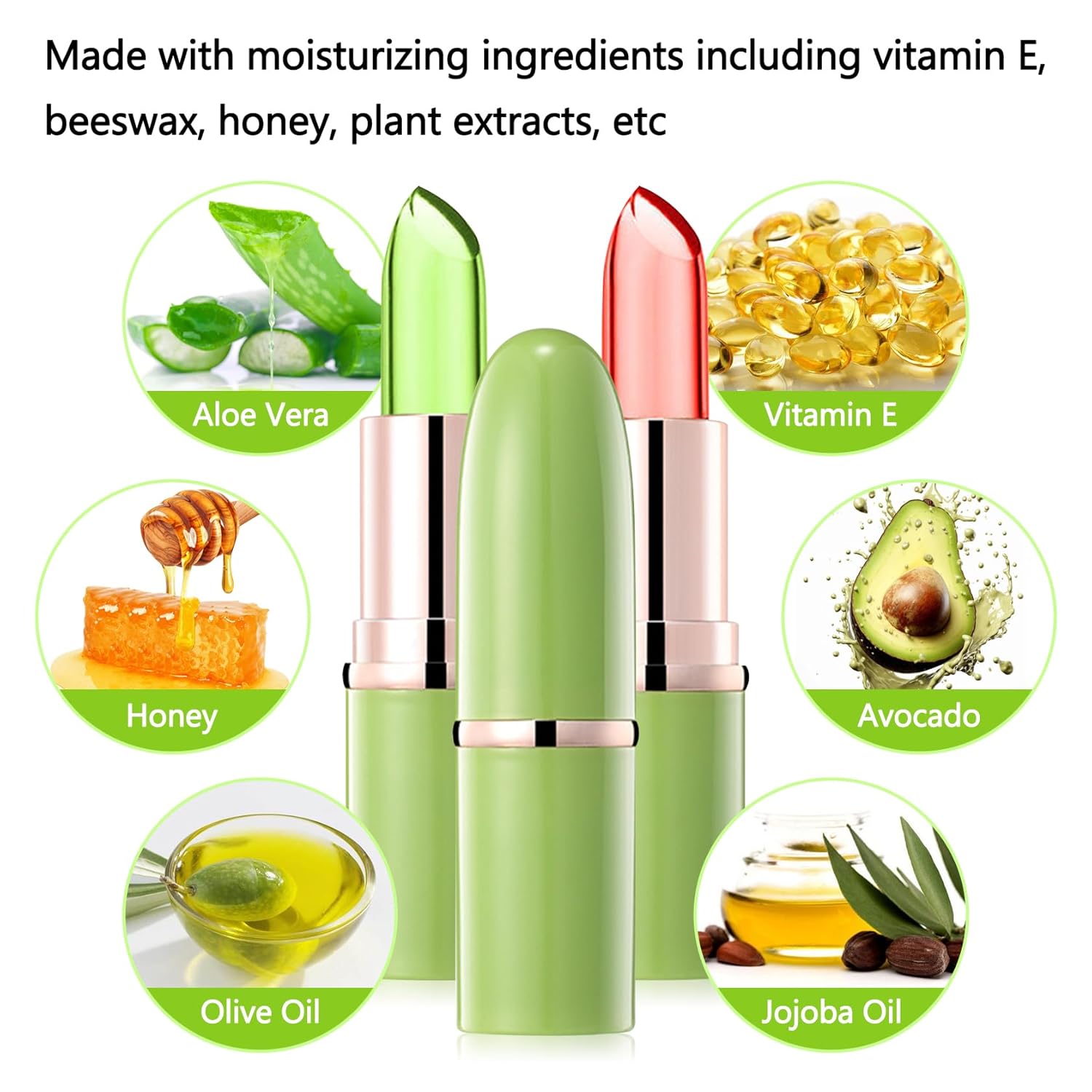 - Fantastic Color Change: Aloe vera lipstick choose special temperature sensing color change technology, can present a unique color on your lips, lipstick set are available in nude, pink and rose, color bright, beautiful lipstick can add a charming personality for makeup
