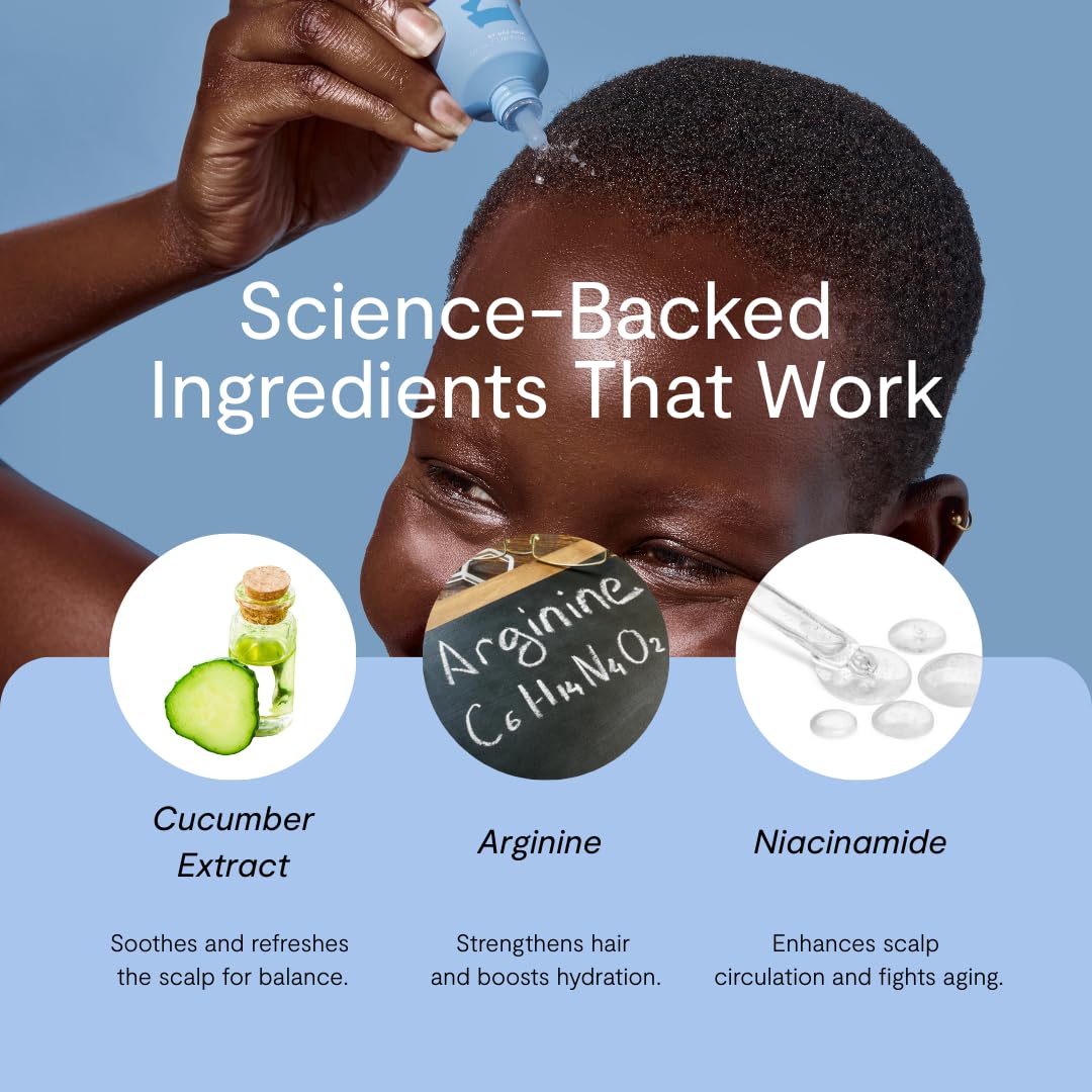 - Cucumber Extract, Arginine & Niacinamide assist to calm scalp irritation, sensitivity & transport nutrients to support the hairโs natural growth cycle for optimal scalp & hair health.
