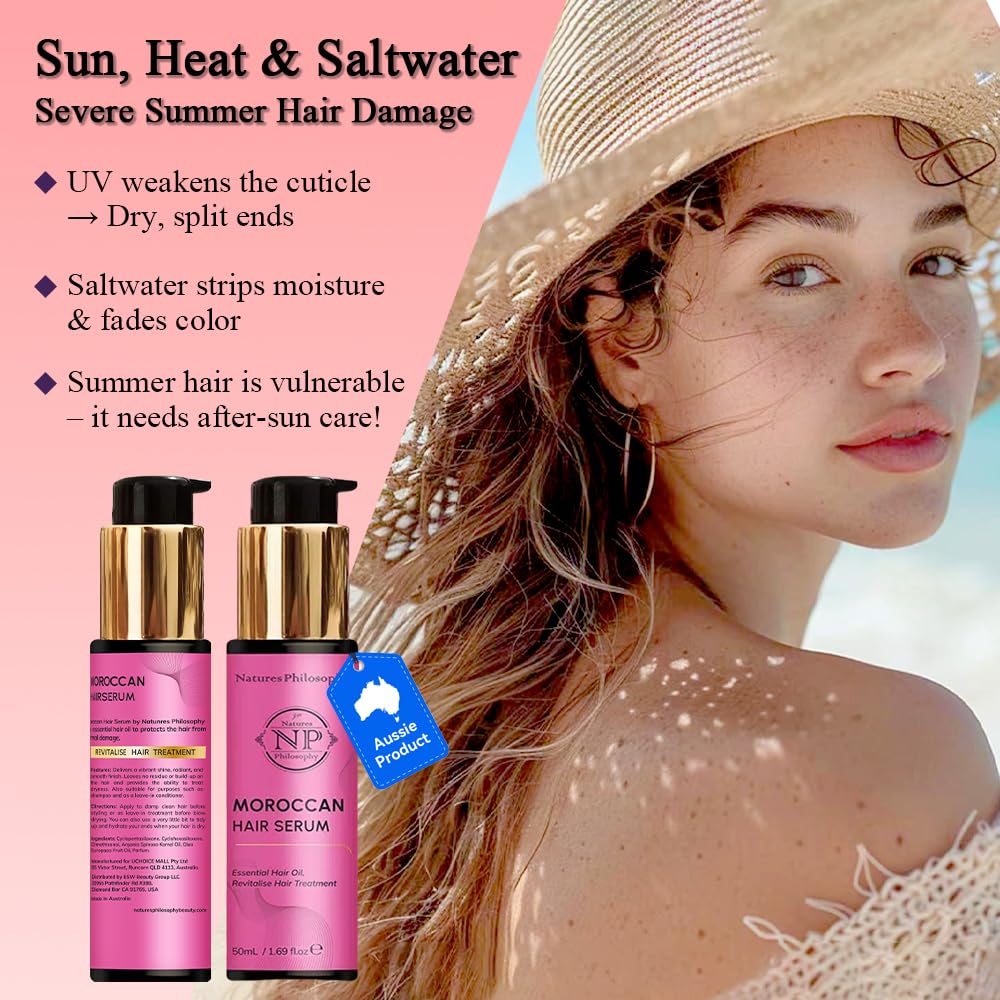 NP NATURES PHILOSOPHY Moroccan Oil Hair Products, Organic Moroccan Argan Oil Hair Serum, Anti-Frizz, Hydrating & Repairing Oil for Damaged Hair, Split Ends, Natural Shine for All Hair Types - 2 Pack