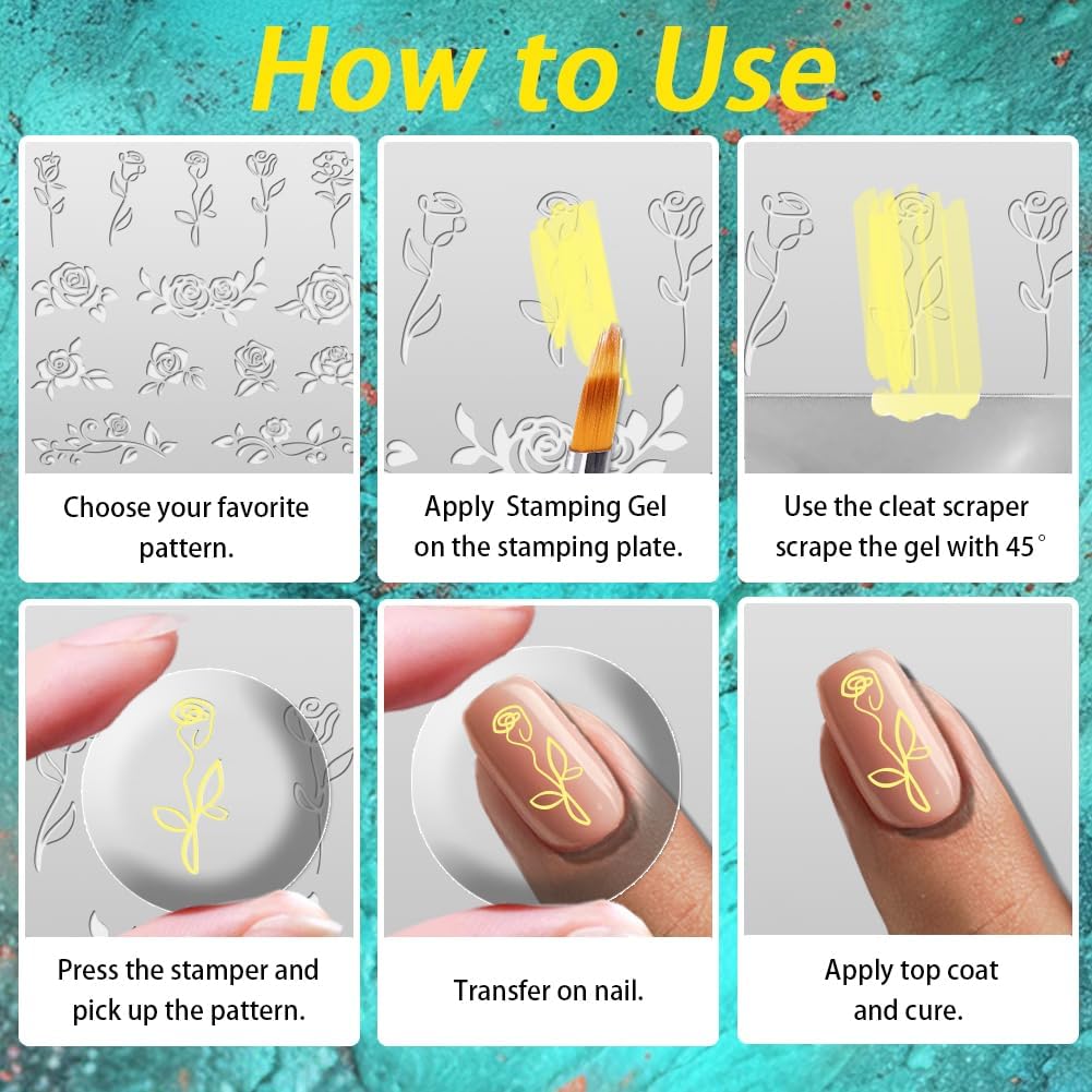 - Package Information: A total of 3 templates, 1 nail stamp and scraper, various rose flower and bouquet patterns, randomly collocation, leading the nail fashion, the world at your fingertips jump