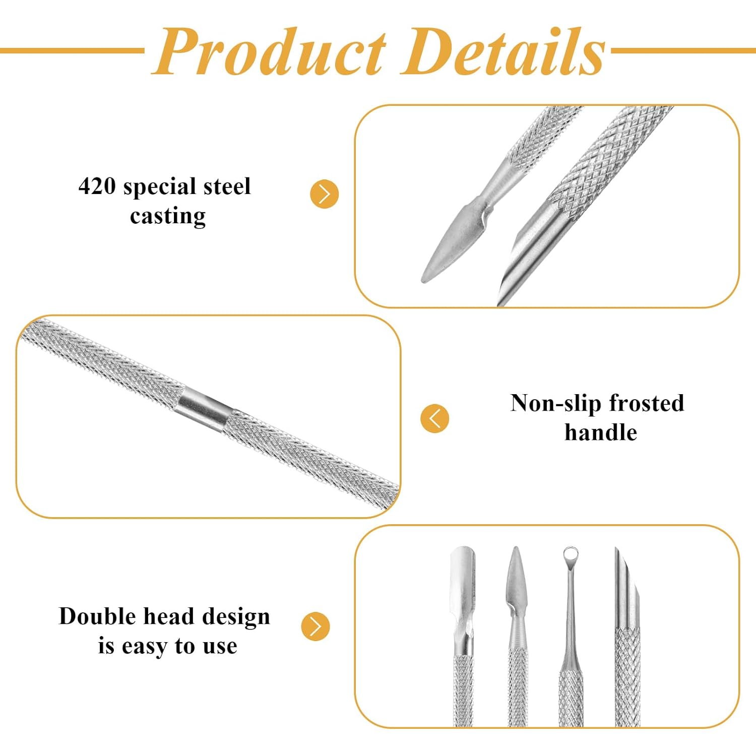 - Durable Stainless Steel & Anti-Slip Grip: Crafted from medical-grade stainless steel, this pusher stays sharp and rust-free even with frequent sanitizing. The textured handle ensures a secure grip during detailed work, reducing slips that could damage nails. Compact and lightweight for travel kits or salon stations