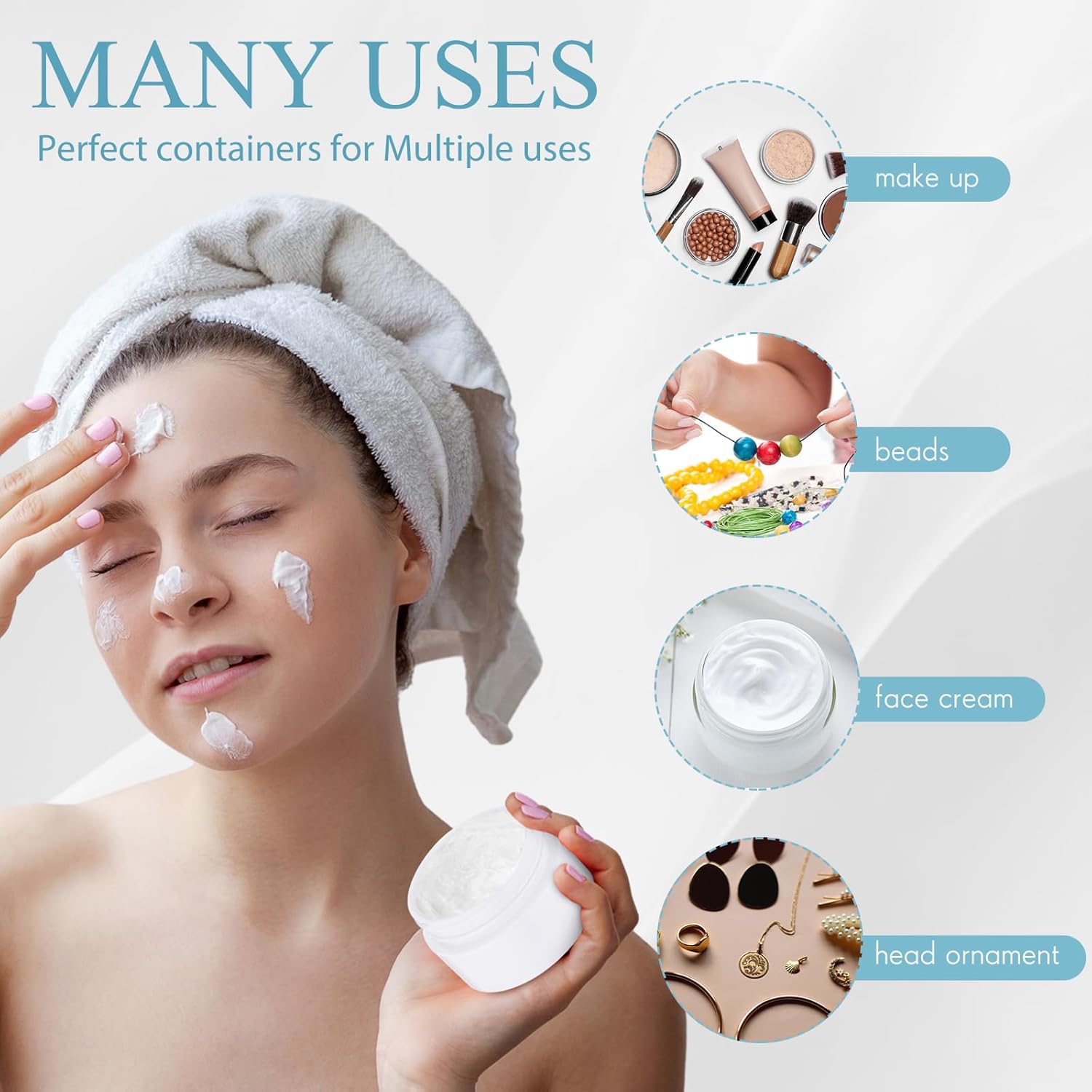- What You Receive: there are 4 pieces plastic jars with white screw-on lids; They are durable and refillable, measuring about 5.2 cm/ 2.05 inches in diameter, 3.3 cm/ 1.3 inches in height