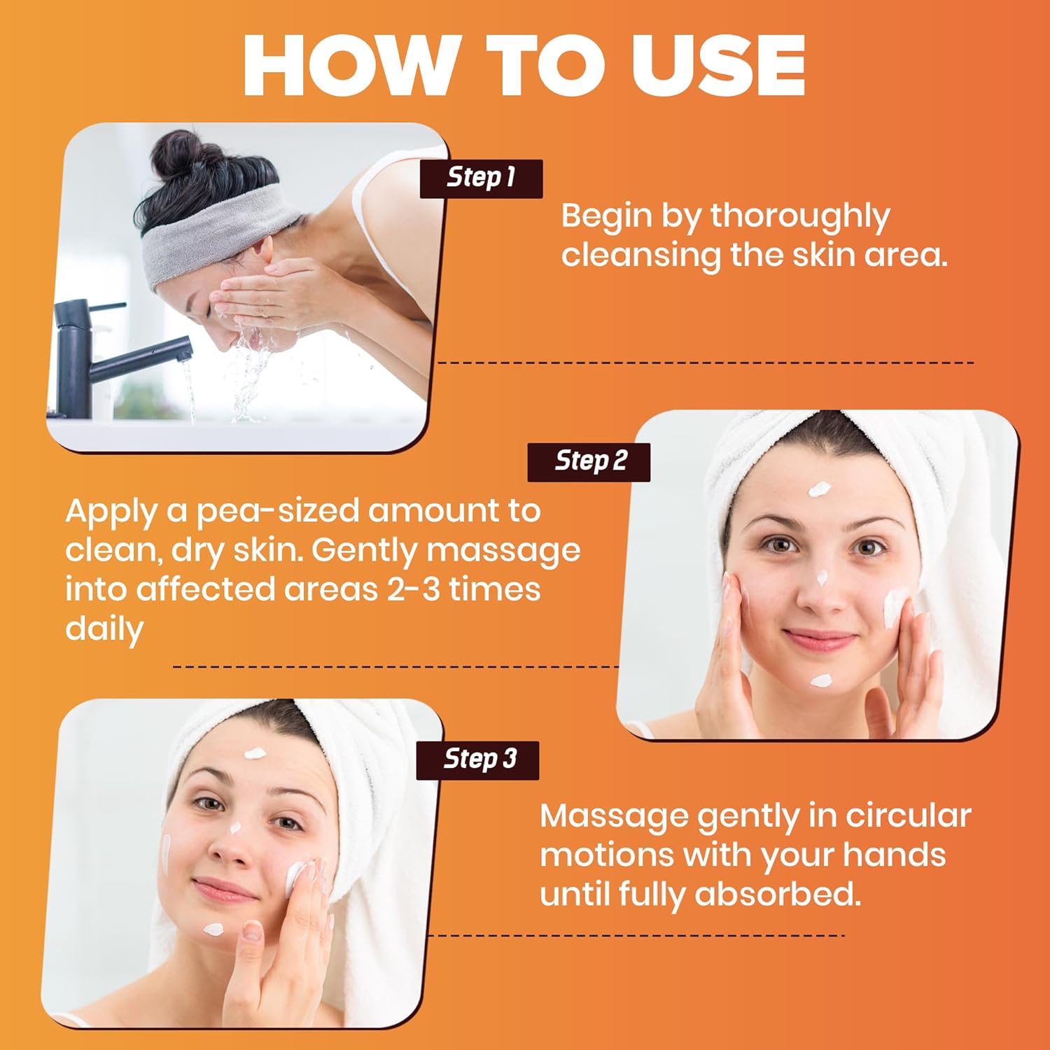 - How to Apply: Simply apply a small amount to the desired area and gently massage in circular motions until fully absorbed.