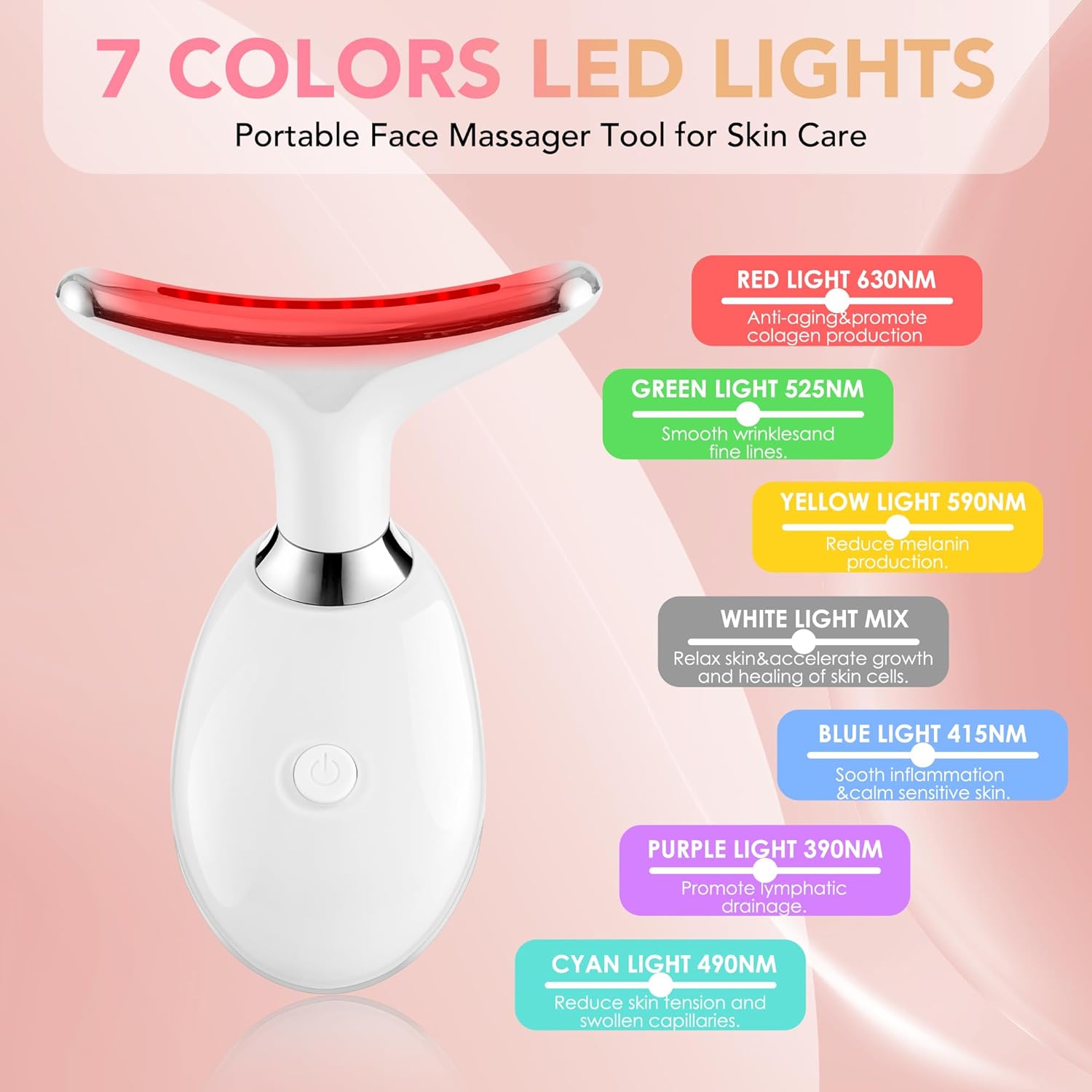 Red-Light-Therapy-for-Face, Facial Massager Wand with 7 Color - Birthday, Christmas, Mothers Day, Valentines Day, Self Care Gifts for Her Women Mom Best Friend Wife Teacher (White)