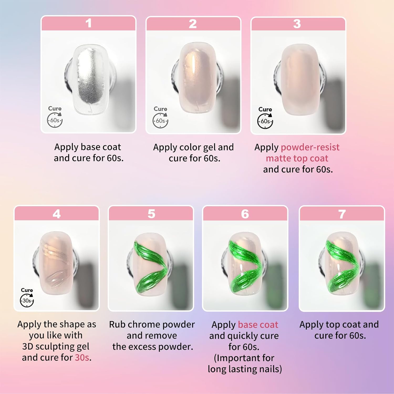 - 30+ DAYS LONG LASTING - Solid nail glue gel provides an unparalleled level of bonding and adhesion. With proper usage, the 3D nail sculpting gel can maintain its hold for 30 Days. Chrome gel nail polish is made of pure natural resin extract, without irritating odor and is also safe for the skin and nails.