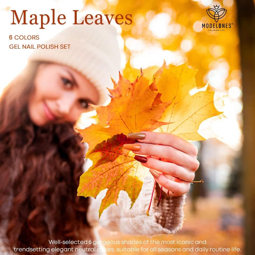 modelones Fall Gel Nail Polish Set, 6 Colors 2025 Nude Brown Burnt Orange Glitter Gel Polish Dark Red Wine Burgundy Maroon Nail Polish Soak Off Halloween Nail Art Manicure Kit DIY Salon Gift