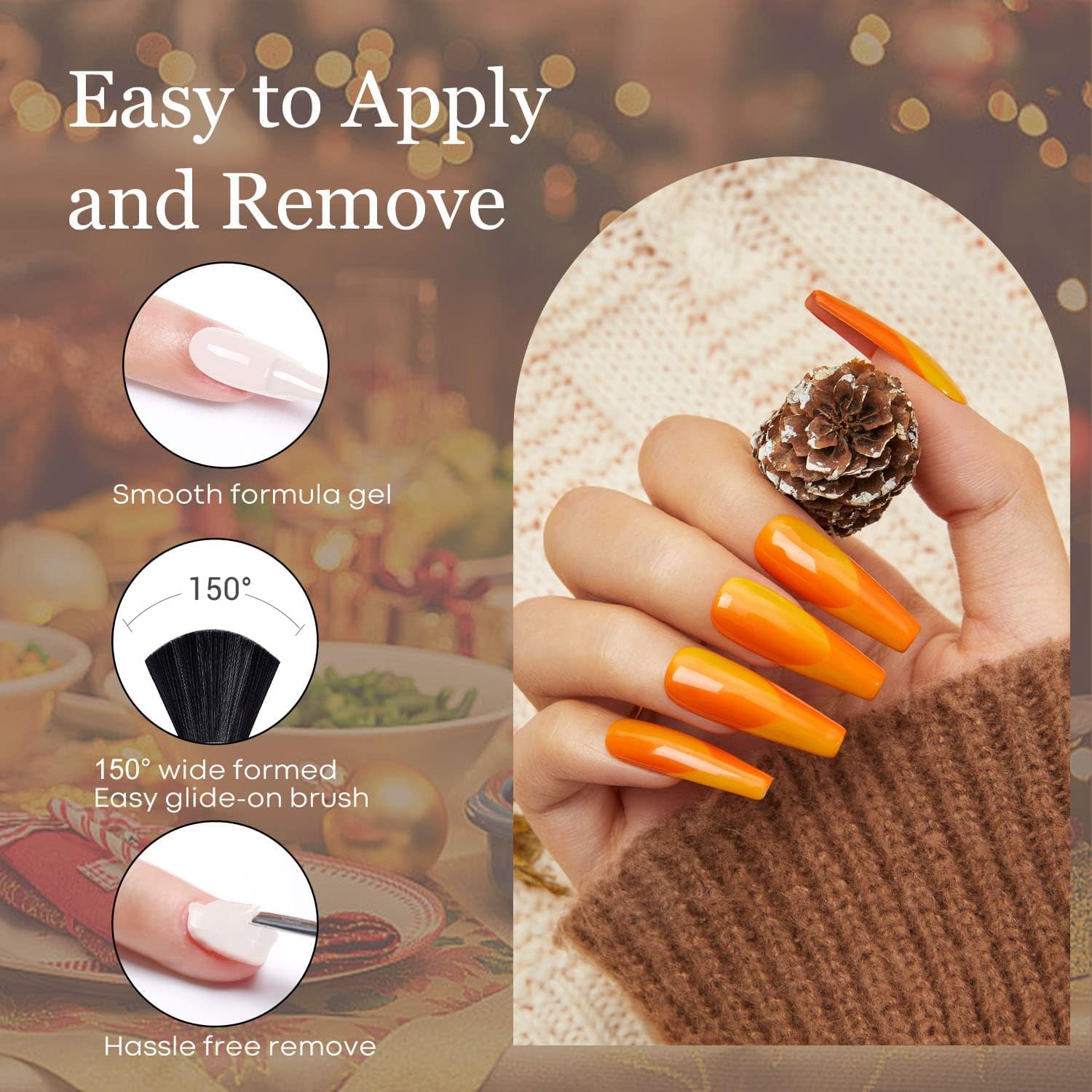 • [Fall Winter Gel Nail Polish Kit]: 6 of the most iconic and trendsetting colors - Carrot Orange, Glitter Red, Dark Red, Coffee Brown, Nude Tone, Wood Brown