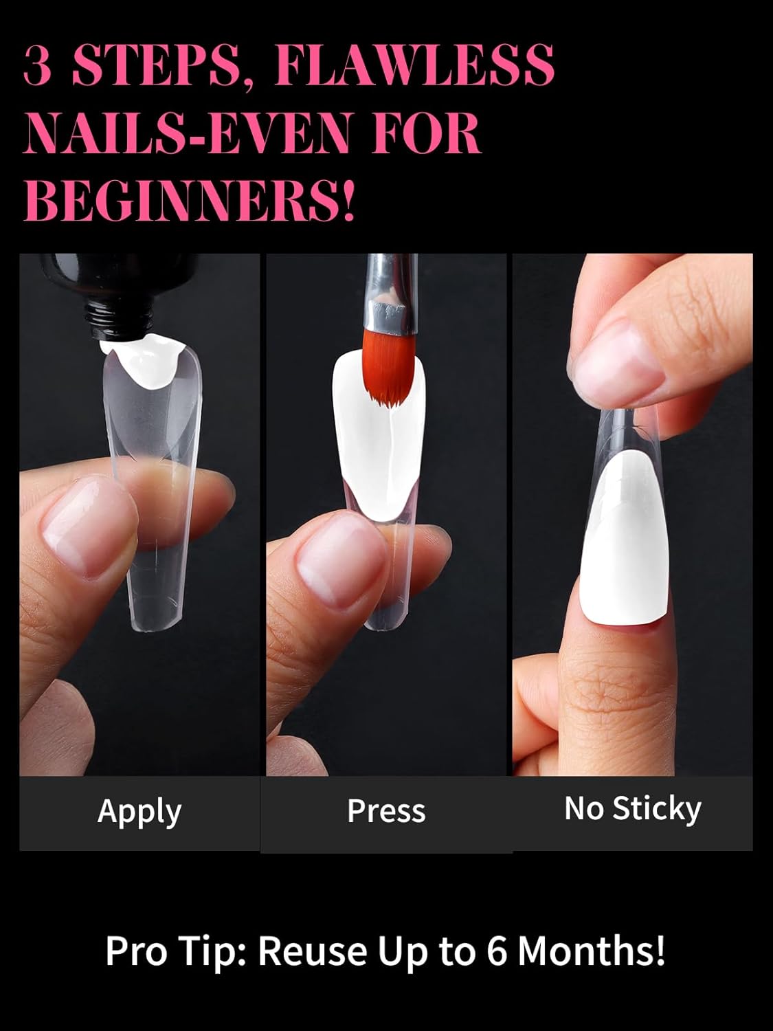 • 【Sturdy No C Curve Gel Nail Forms】Reusable extra long nail molds are made with high quality material, which is strong, tough, and reusable, providing you with a different lengths nail art experience that lasts.This artificial nails forms protective sleeve has a small handle on both sides, which is convenient for constructing gel nail extension nails, and will not stick to your hands, and can be easily removed after application.