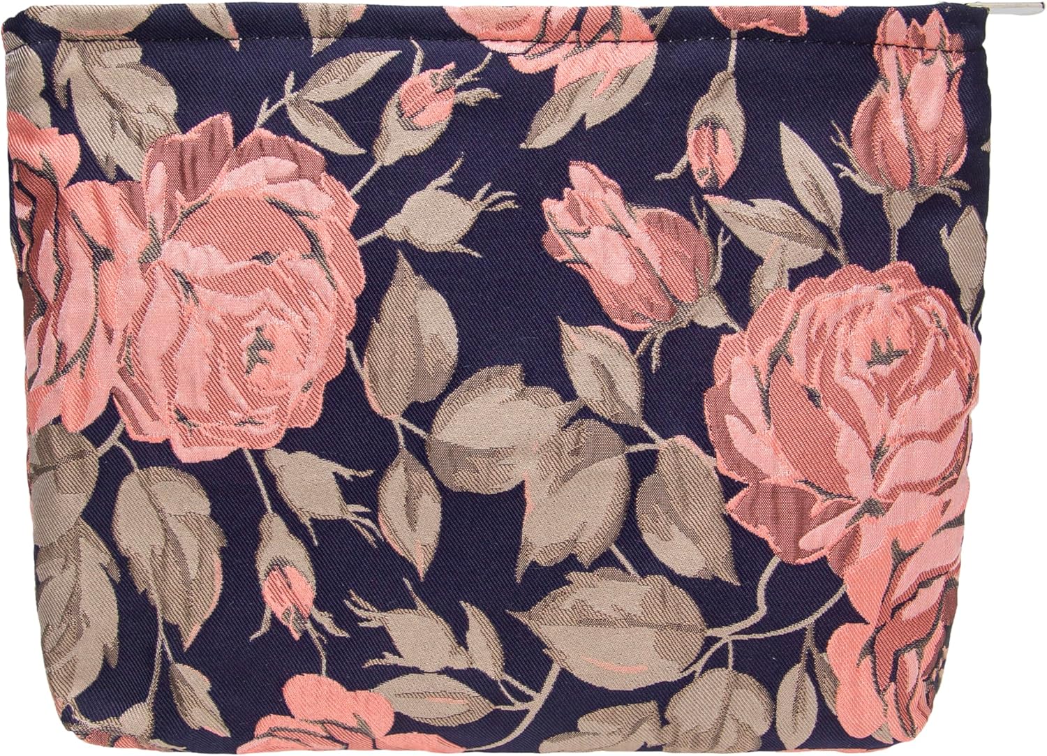 PAZIMIIK Makeup Bag Large Cotton Zipper Pouch for Purse Travel Canvas Make Up Organizer for Women Cosmetic,Rose Black Blue