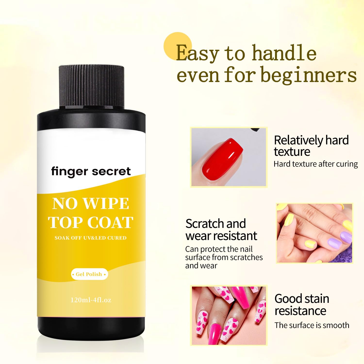 120ml/4floz No Wipe Gel Top Coat for Gel Nail Polish, Quick Dry Clear Nail Polish, Nail Supplies for DIY in Salon or Home Use.