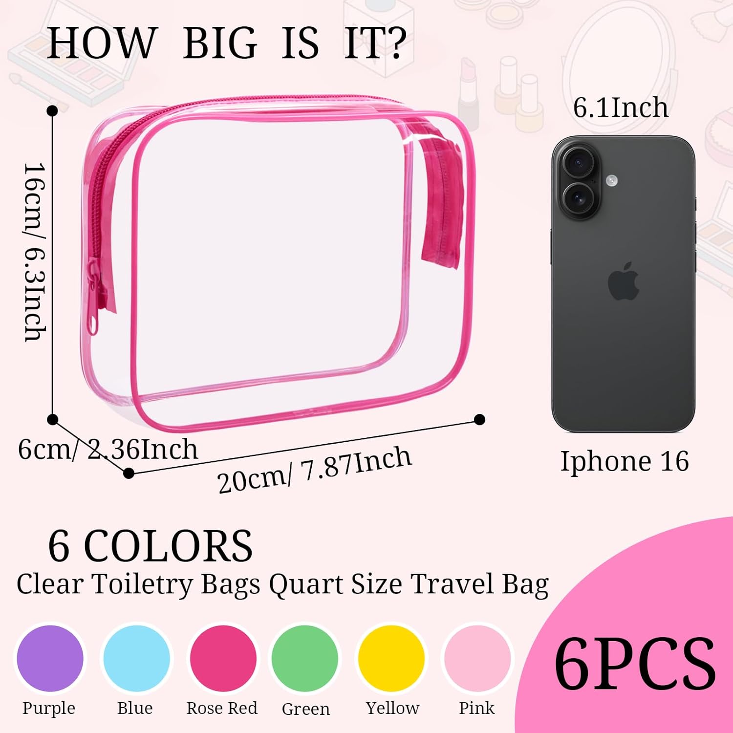 6 Pieces Clear Makeup Bags Bulk TSA Approved Toiletry Bag for Travel PVC Waterproof Clear Cosmetic Pouch with Zipper for Men and Women Carry-on Travel Essentials