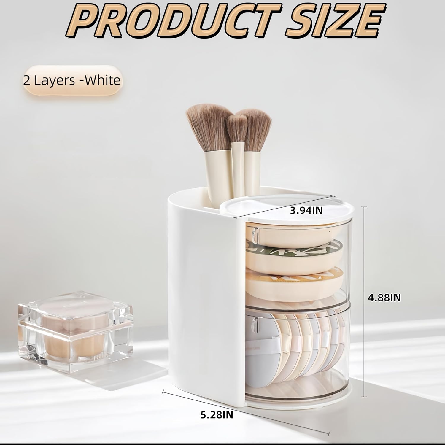 - â ăRotatable DesignăThe hairbrush holder organizer unique 180° rotatable design allows you to quickly find the powder puff, beauty egg, cotton swab or hairpin you need with just a slight turn, without the hassle of searching, saving you makeup time