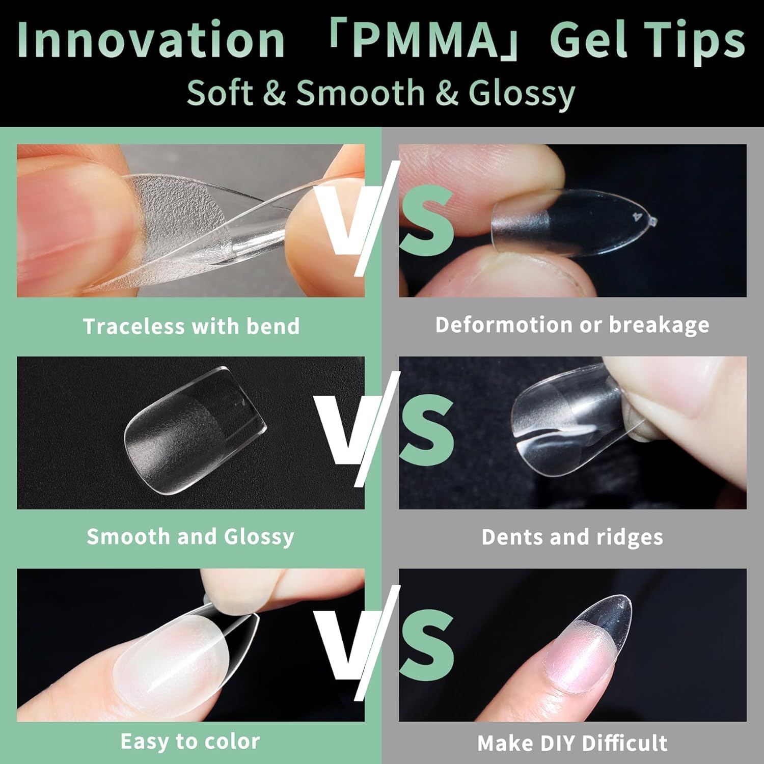 • No Trace Gel Nail Tips Soft: Crafted from gelly soft material gel, these fake nails leave no trace even when bent. Their bright clarity allows for easy pressing, trimming, and painting, helping you create your ideal nail shape effortlessly. Perfect for a true DIY manicure.