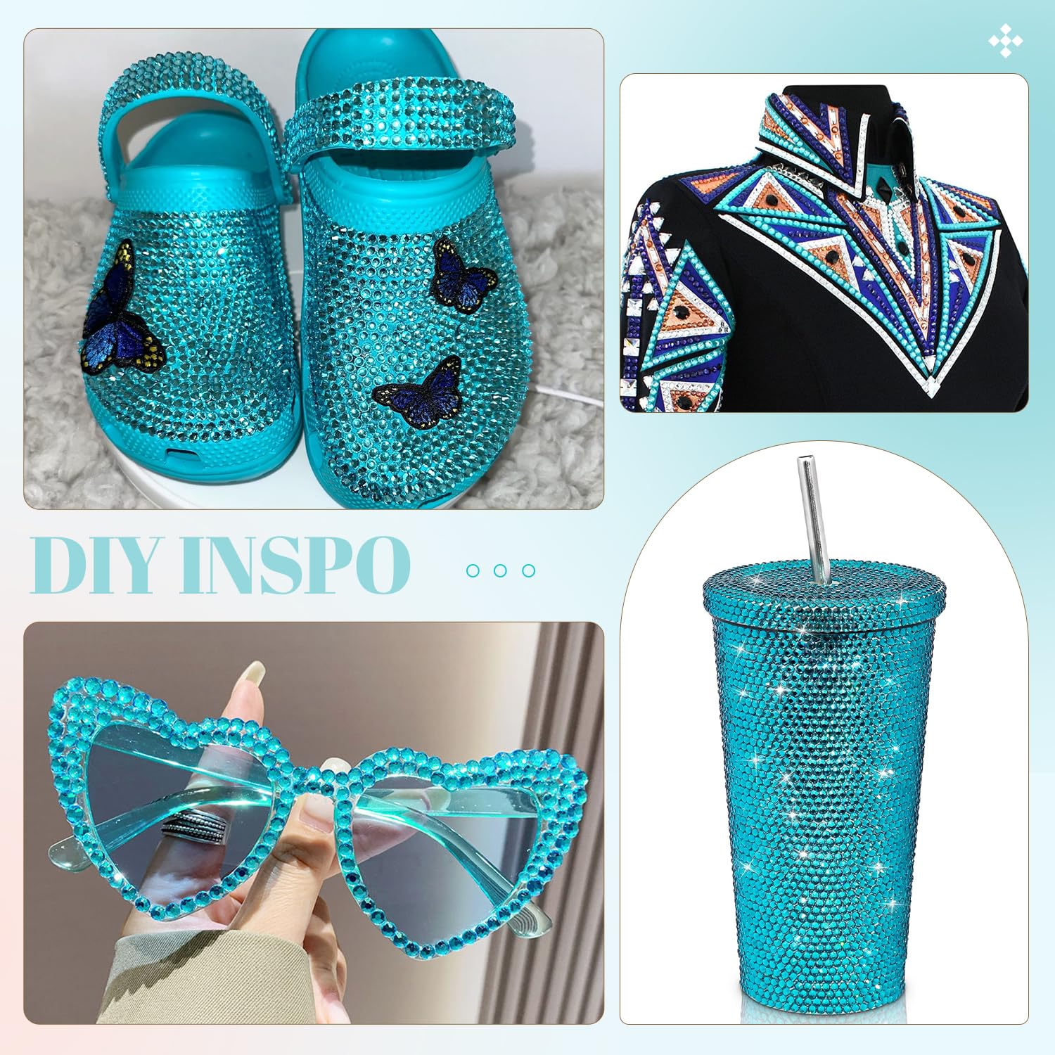 6100Pcs Resin Rhinestones for Crafting with 2Pcs 10ml B7000 Jewelry Glue, 1 Box Flatback Crystals Diamond (Teal Blue) for Bedazzling Crafts DIY Nail Art,Non Hotfix Gems for Clothing Shoes Tumblers