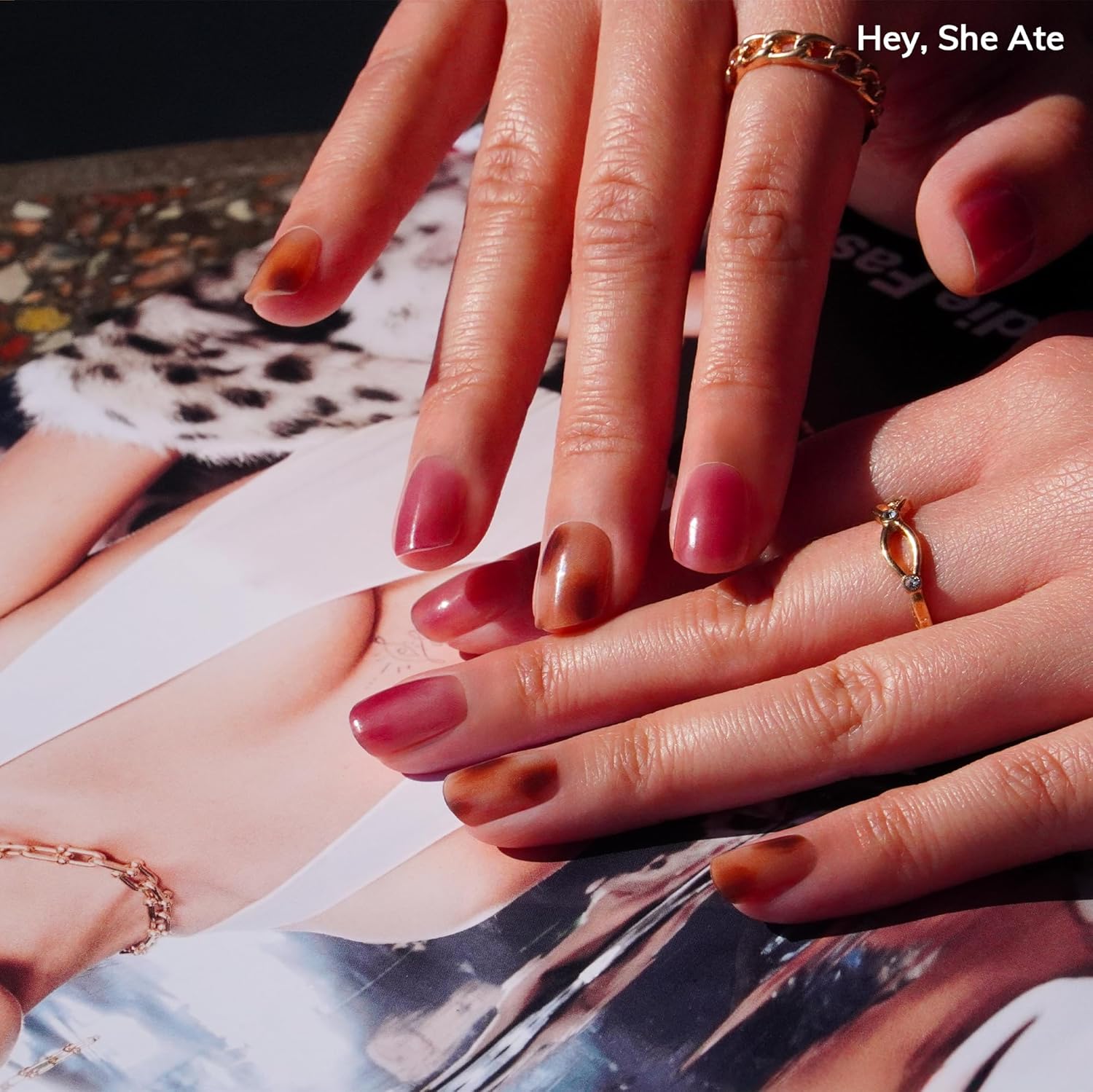 Semi Cured Gel Nail Strips | No LED Lamp Needed | Summer, Marble, Red | Easy Apply & Remove, Salon Quality | Includes 28 Strips, 1 Prep Pads, Nail File & Wooden Stick - Hey, She Ate