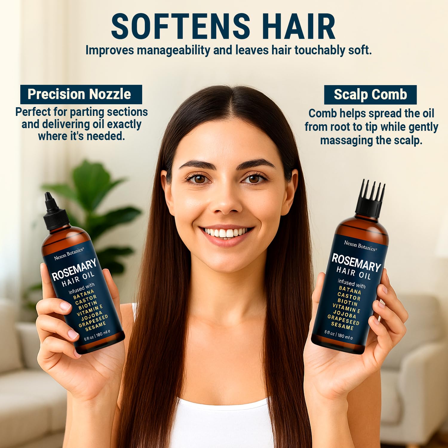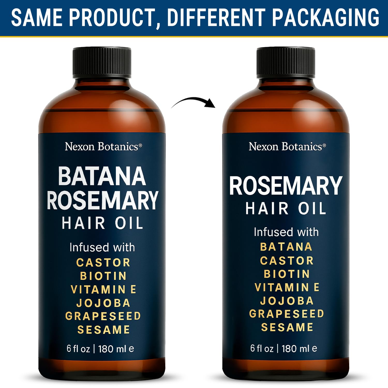 Nexon Botanics Rosemary Oil for Hair Growth 6 fl oz - Natural Scalp and Hair Oil with Batana, Castor, Biotin, Vitamin E, Grapeseed, Jojoba, Sesame - Aceite de Romero y Batana