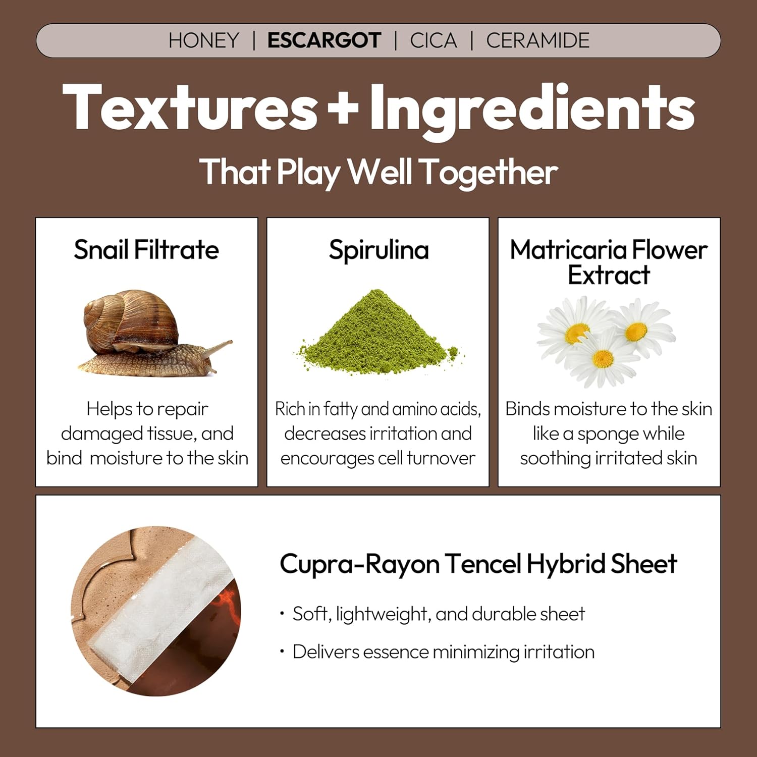 - COMPLETE SKIN CARE SET – VARIETY PACK. This carefully curated 12-face mask set includes our most-loved Escargot, Cica, Ceramide, and Honey facial masks to boost barriers and rejuvenate skin. Each sheet is designed to provide targeted care, whether you’re looking to hydrate, calm, or restore.
