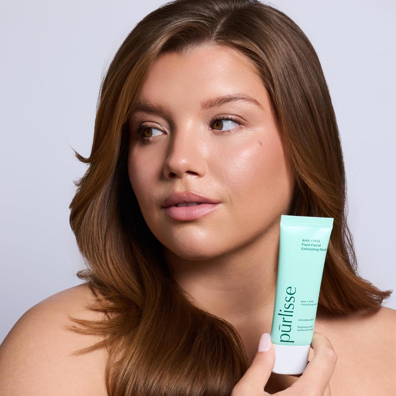 pürlisse AHA & PHA Flash Facial Exfoliant - Gentle Brightening Mask to Help Gently Refine Texture, Clear Pores & Even Skin Tone - Enriched with Fruit Enzymes to Support Skin Barrier (1.7 oz)