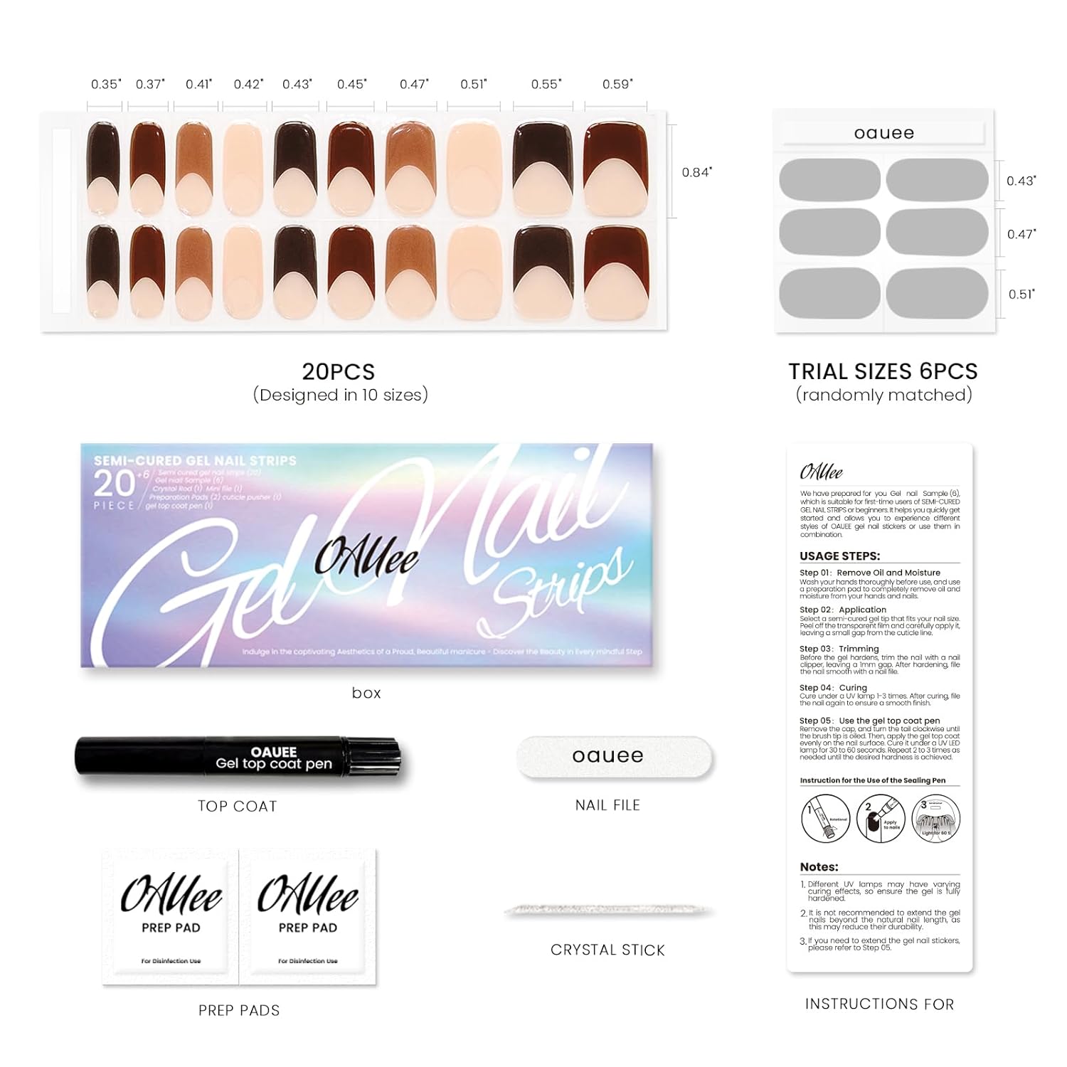 - Product Upgrade: OAUEE has developed an upgrade plan to make the edges of the gel nail stickers more snug, allowing even beginners to better use our gel nail stickers. To achieve a salon-level manicure effect, we have added tempered gel topcoat, enabling professional manicure enthusiasts to better customize their nail shapes