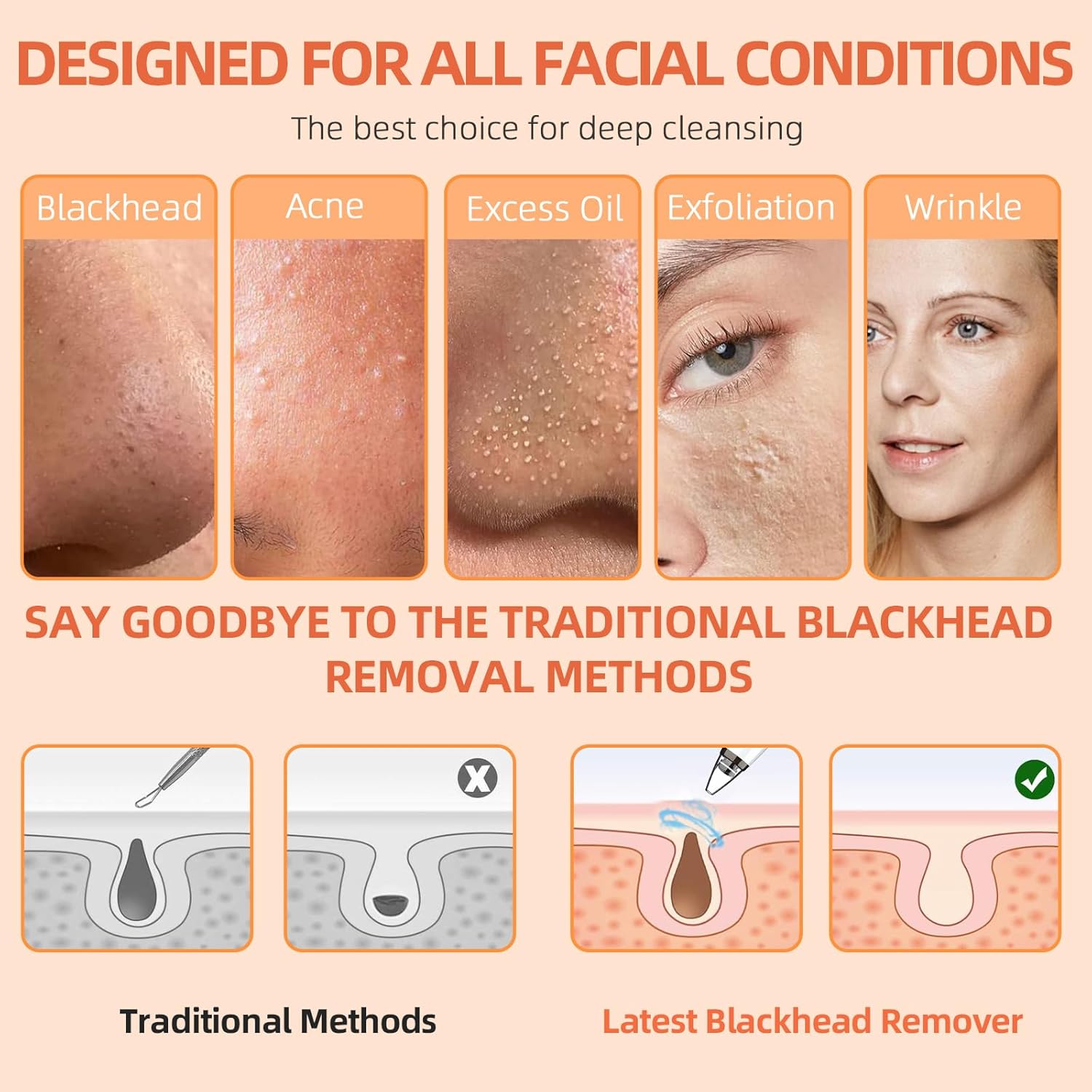 - 【UPGRADED SUPER SUCTION TECHNOLOGY 】Our Blackhead Vacuum Extractor Maximum Suction Power Of 69kpa, Can Be Safely Used On The Face Directly Achieve Deep Cleaning And Effectively Remove Blackheads, Whiteheads, Dead Skin,Grease And MakeupResidues,Shrink Pores And Smooth Fine Lines Without Damaging Skin