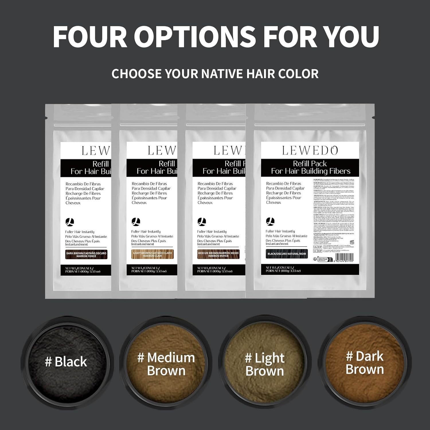 Hair Building Fibers Refill Pack - 100g Instant Thickening Fibers for Men & Women, Natural Cotton Powder, Wind/Rain Resistant, For All Hair Fiber Applicator Bottles (Black)