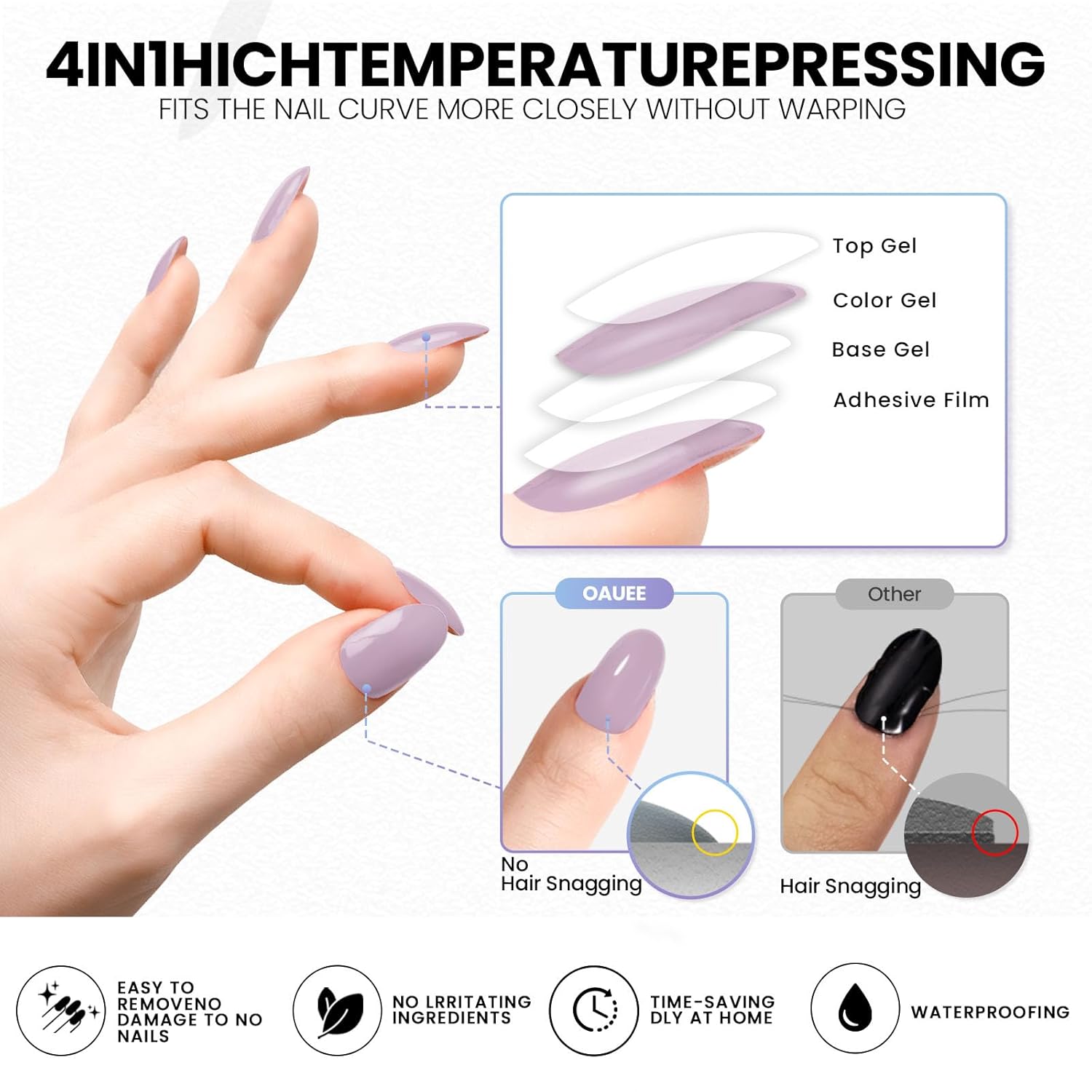 - Product Upgrade: OAUEE has developed an upgrade plan to make the edges of the gel nail stickers more snug, allowing even beginners to better use our gel nail stickers. To achieve a salon-level manicure effect, we have added tempered gel topcoat, enabling professional manicure enthusiasts to better customize their nail shapes