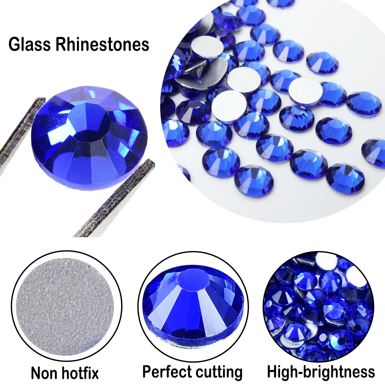 Flatback Glass Rhinestones,Bedazzler Gems 1440pcs Non Hotfix Crystal Rhinestones for Nail Charms Crafts Clothes Tumblers,Sapphire,SS20