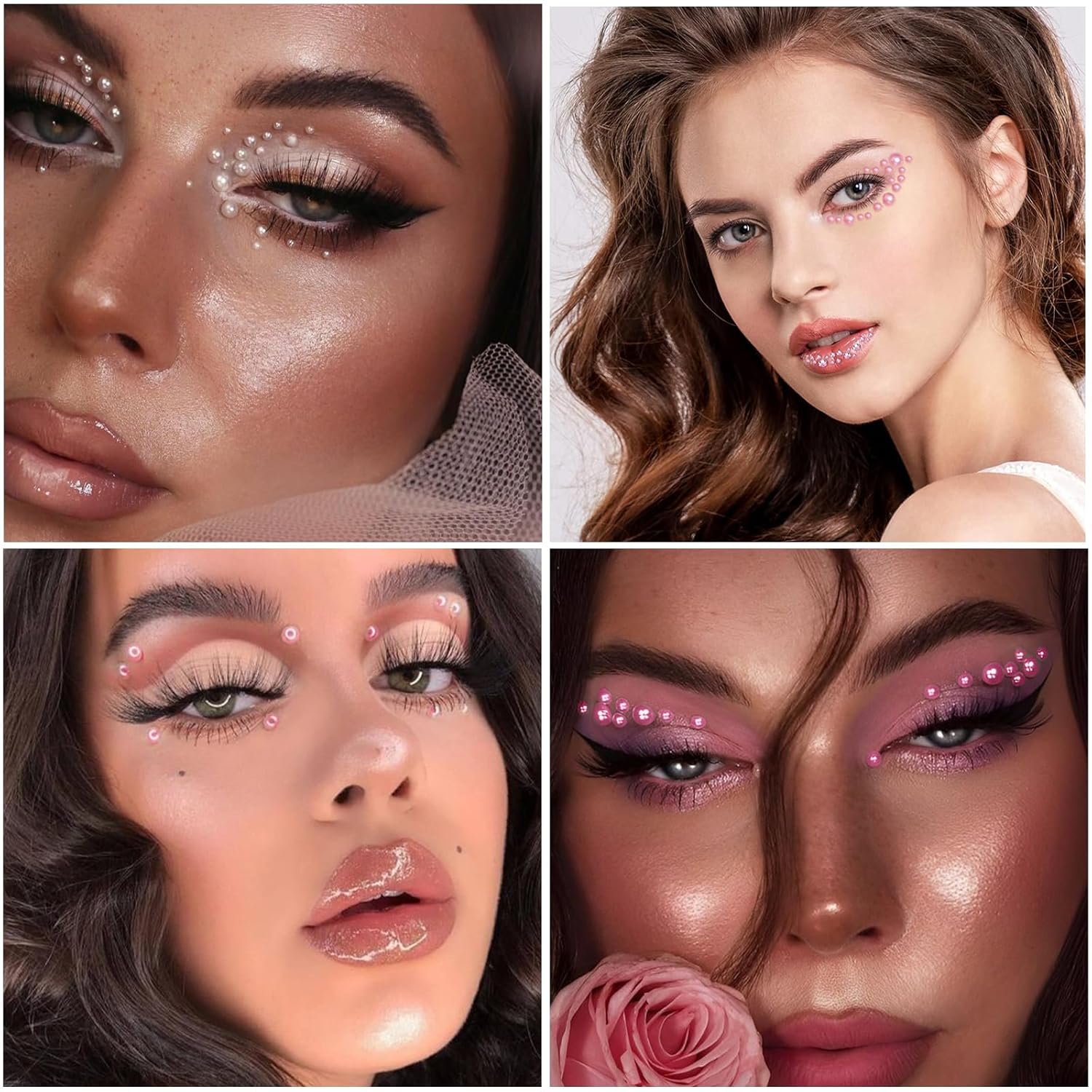 Nail Art Pearls with Glue Gel Flatback Pink Red 4 Colors Nail Charms Pearls Mixed Size 0.03-0.18in Nails Gems Pearl Accessories for Women Nails Design Decoration