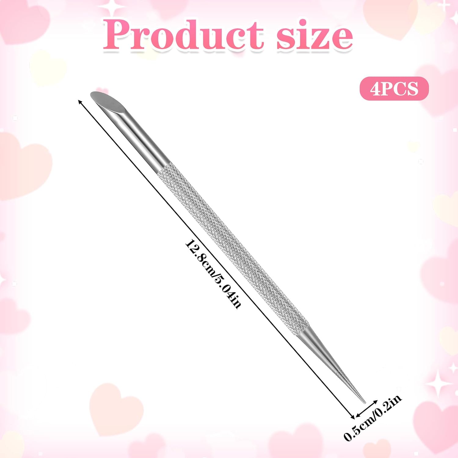 4 pcs Stainless Steel Cuticle Pusher,Cuticle Remover Tool,Nail Cleaning Cuticles Stick,Metal Nail Cuticles Pusher Nails Polish Remover Tool for Professional Manicure Pedicure