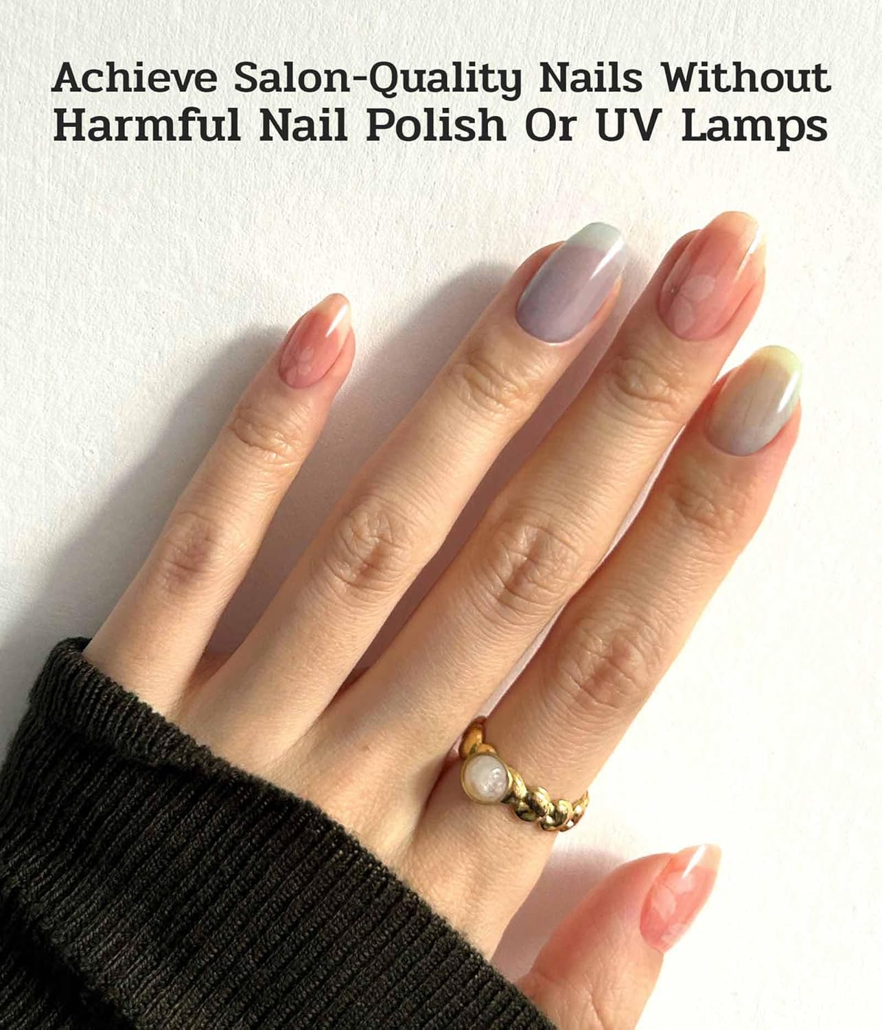 - New Technology - Compared with traditional nail polish and semi-cured gel nail strips, Our nail strips are pre-cured with glossy 3D nails effect. No need for uv light and drying time, these nail polish strips are thinner and more breathable, providing better protection for your nails. The gel nail strips is made of 100% cosmetic ingredients without any toxic or harmful materials.