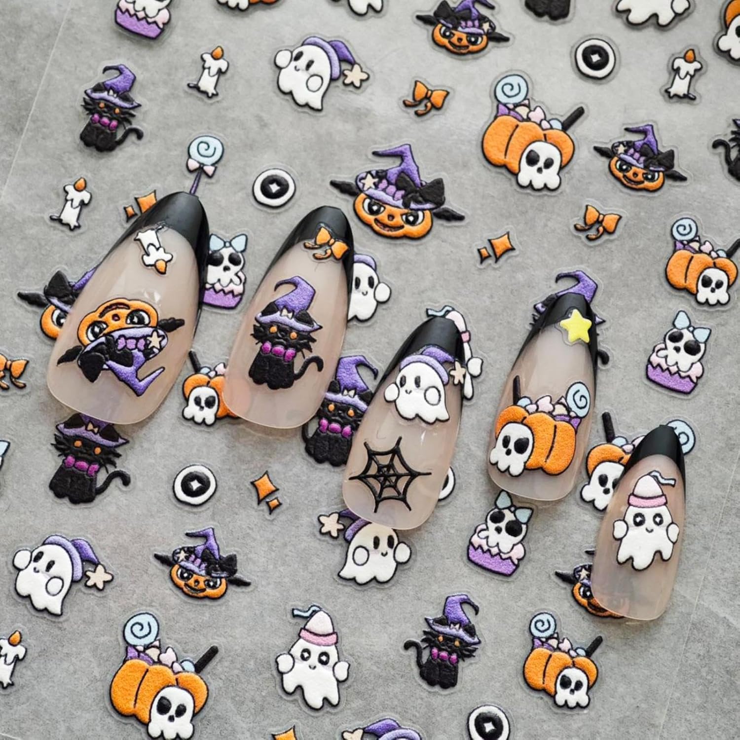 - Fashion Nail Designs:There 5D Halloween nail decals,large number of different color for you to use and replace in daily life, nail decals are full of sensuality and elegance,Various charming patterns bring you a different mood