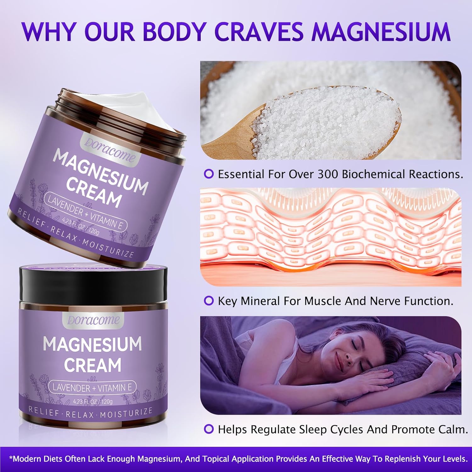 - 【Nighttime Sleep Support】:Formulated as a gentle magnesium lotion for sleep, this cream helps calm the body and mind before bed. Apply to legs or feet as part of your nighttime routine to reduce discomfort and create a restful atmosphere for deeper, more peaceful sleep.