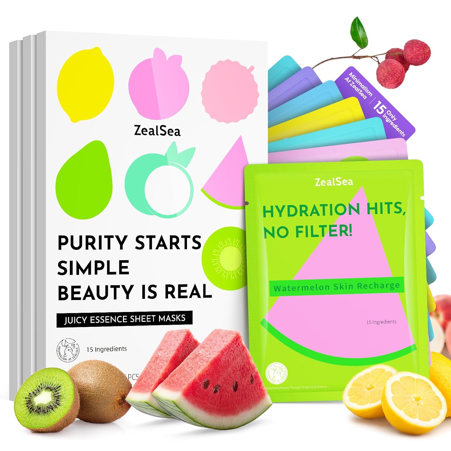 ZealSea Clean Beauty Face Masks Skincare, Minimalism 15 Ingredients Sheet Mask, Dopamine Color Design Facial Mask, Sleepover & Slumber Spa Party Supplies, Women Teen Girl Gifts Trendy Stuff, 21 Pack