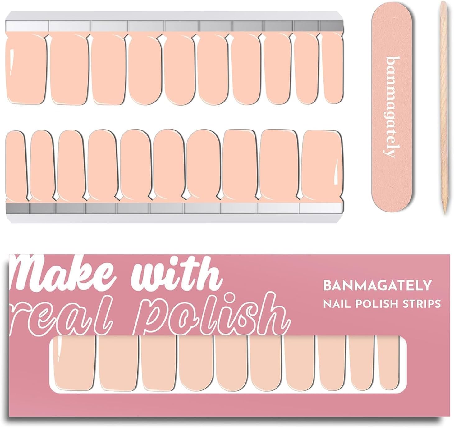Nail Polish Strips, 20Pcs Salon Quality Gel Nail Stickers, Easy Long Lasting Wraps for Short Nails no UV Light Needed (Light Pink)