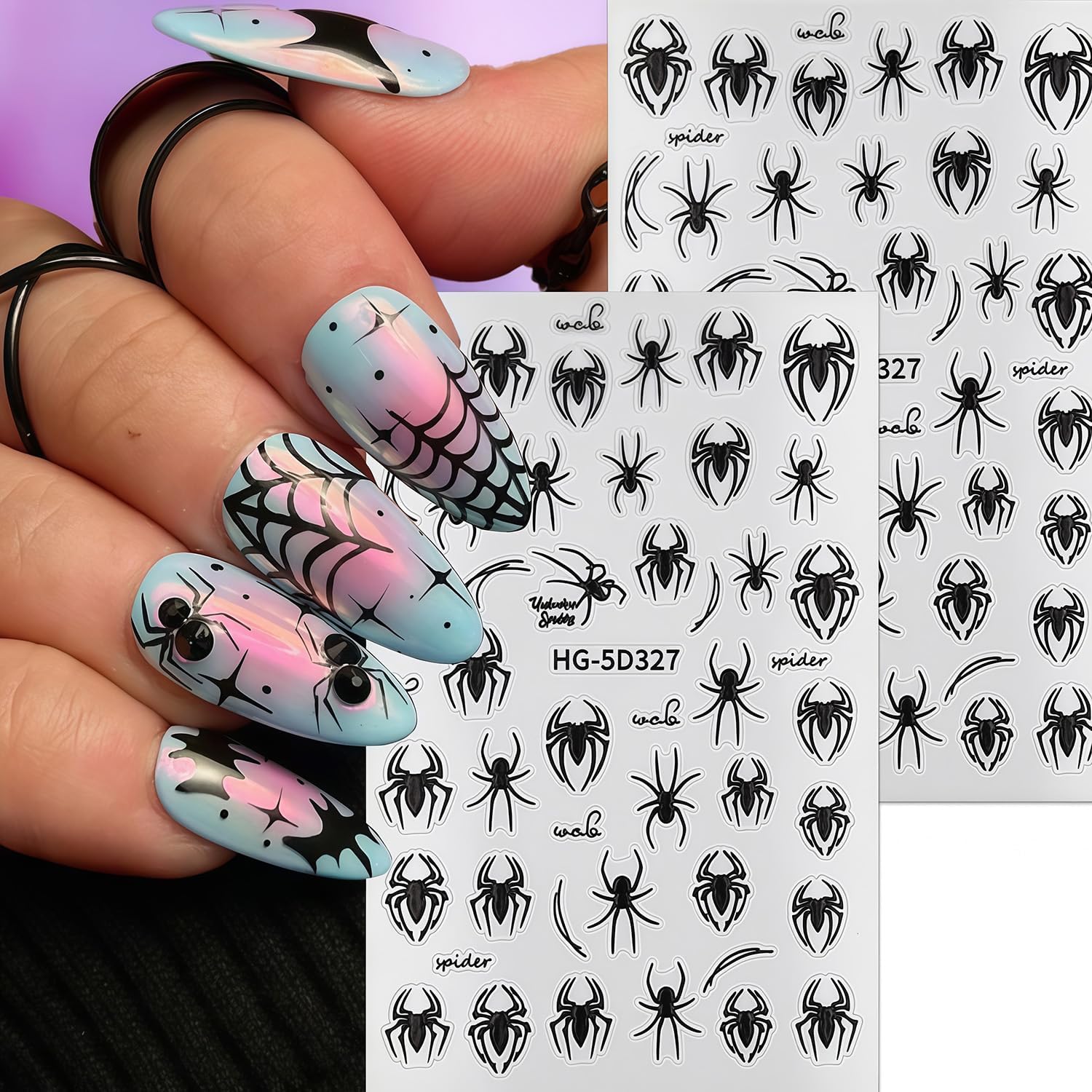 - Quantity: You will get 8 sheets of Halloween spider nail decals, including cute spider and spider web designs, not easy to fall off or fade, can easily create a variety of themed nail art, meet various nail art needs