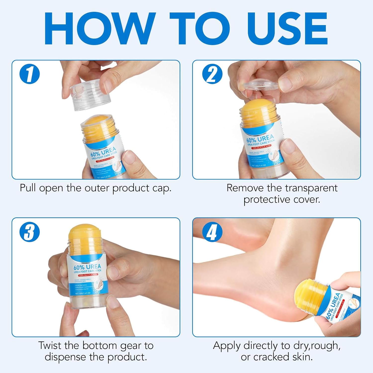 - 【Natural and Gentle Formula】Urea foot care stick with 60% Urea and 2% Salicylic Acid, support hydrating and moisturizing, delivering essential moisture to dry cracked feet. Urea cream stick is the best solution for dry cracked heels, knees, elbows, hands repair