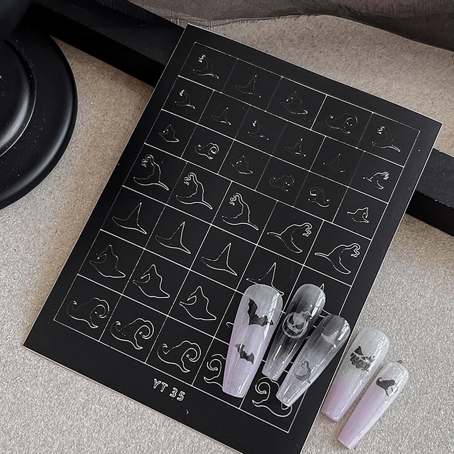 - Versatile Combination: Each sheet includes dozens of different patterns, allowing you to mix and match as you like—cover your entire nail with a ghostly ensemble, place a skull on the index finger as a focal point, or layer multiple designs for a 3D effect.