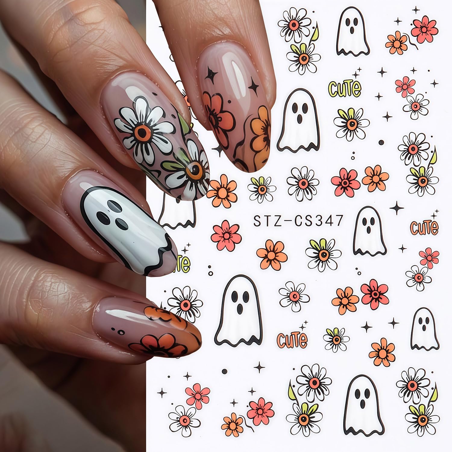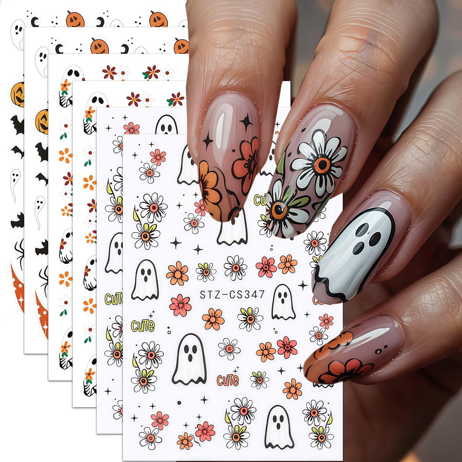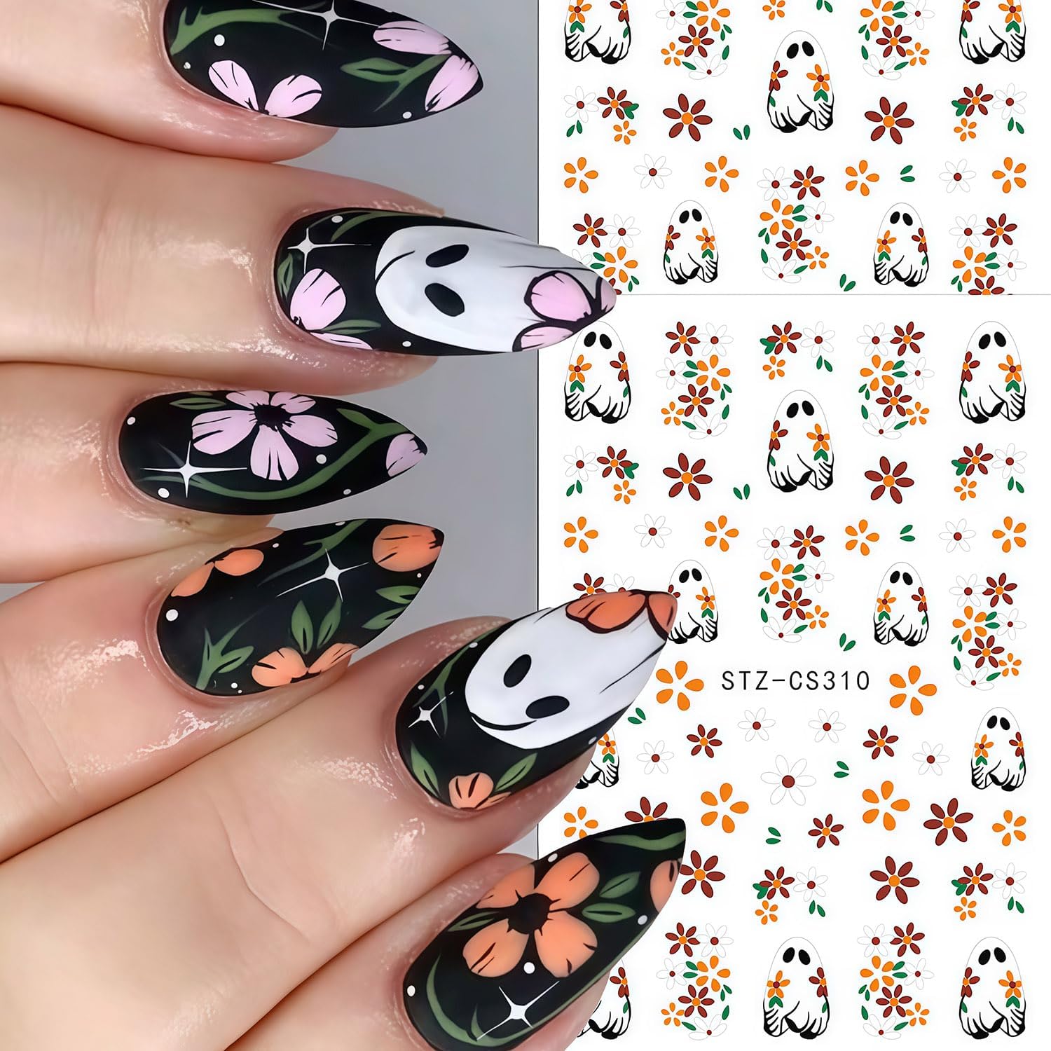 - Quantity: You will get 6 sheets of ghost nail art stickers, including cute ghost and flower, french tip designs, not easy to fall off or fade, can easily create a variety of themed nail art, meet various nail art needs