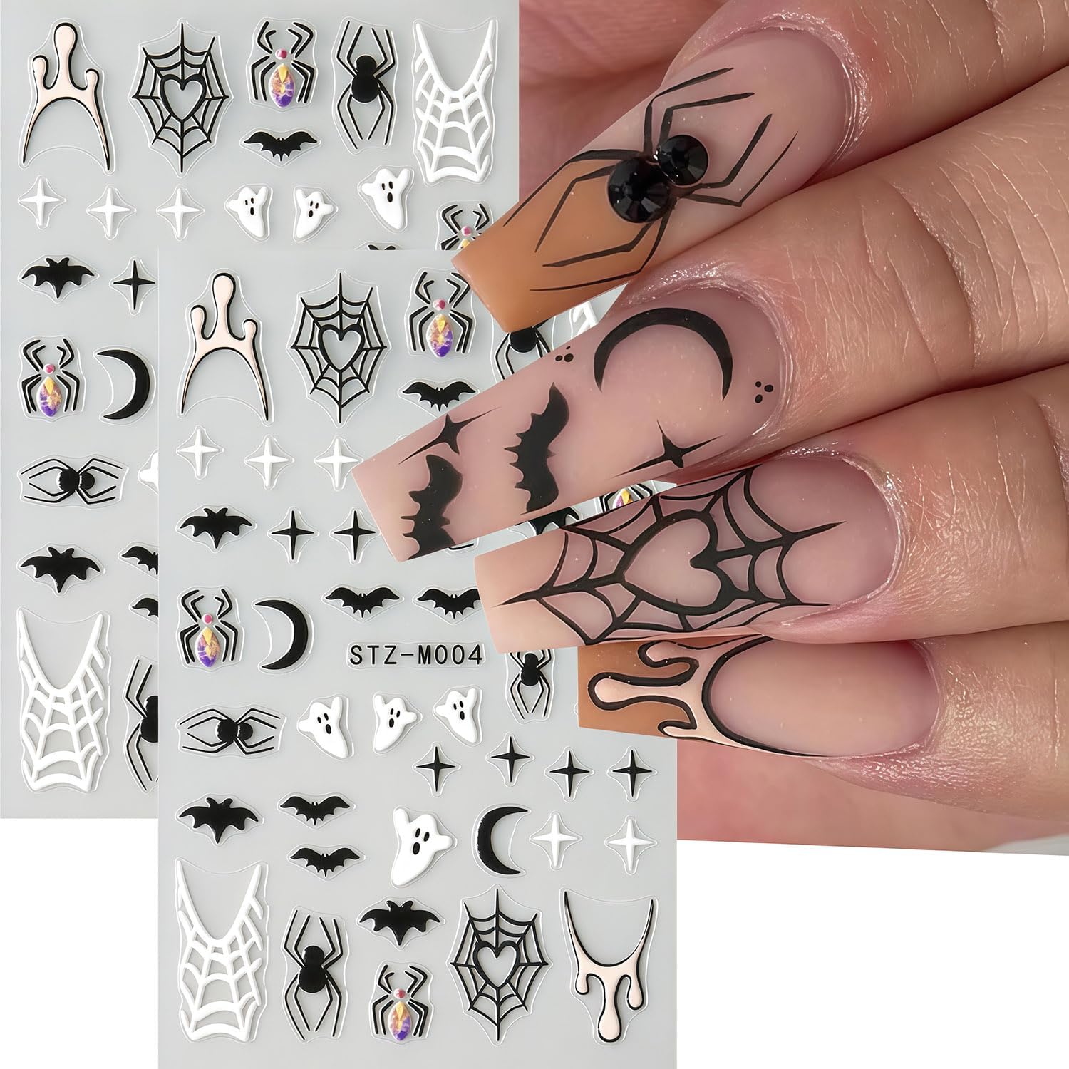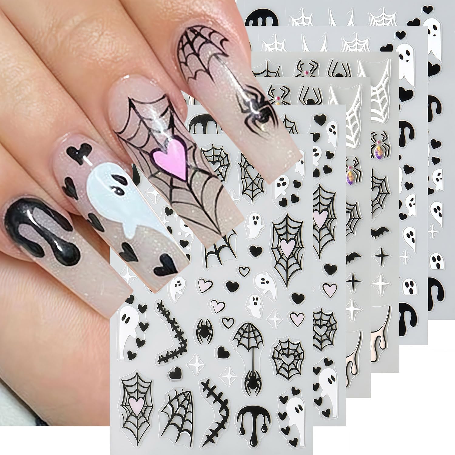 - Quantity: You will get 6 sheets of spider web bat nail art stickers, including cute ghost and spider bat designs, not easy to fall off or fade, can easily create a variety of themed nail art, meet various nail art needs