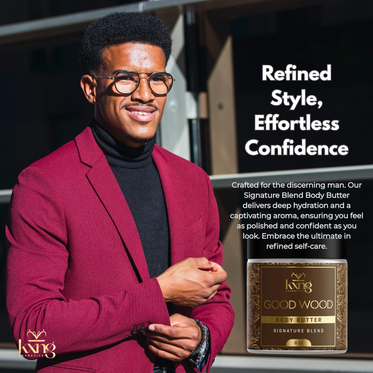 KXNG Cosmetics, Body Butter, Organic Skin Care for Men and Women, Body Moisturizer Lotions and Creams, Raw Shea Butter, Cocoa Butter, Mango, Coconut Oil, Hand, Foot, All Skin Types (Good Wood XL)